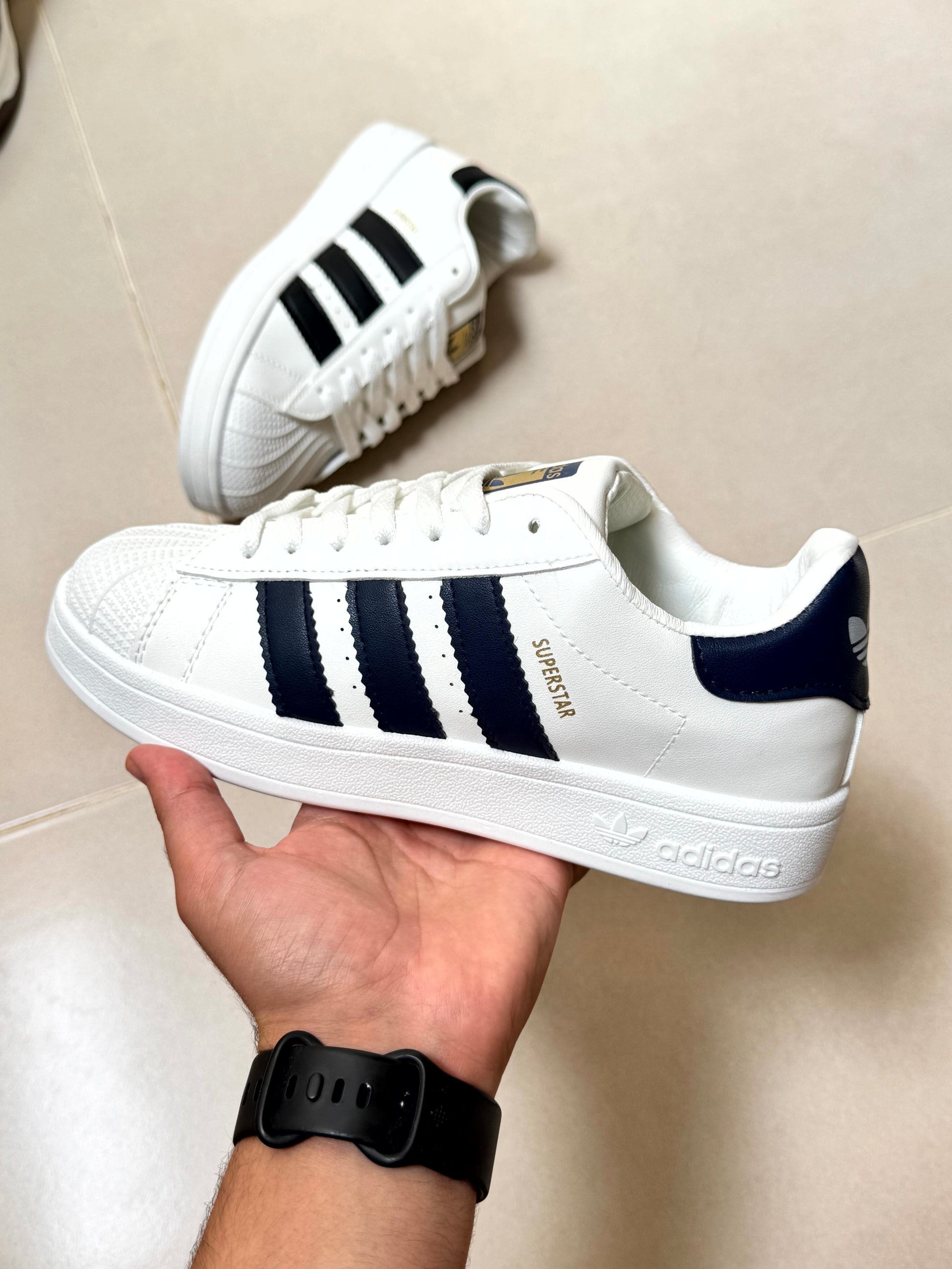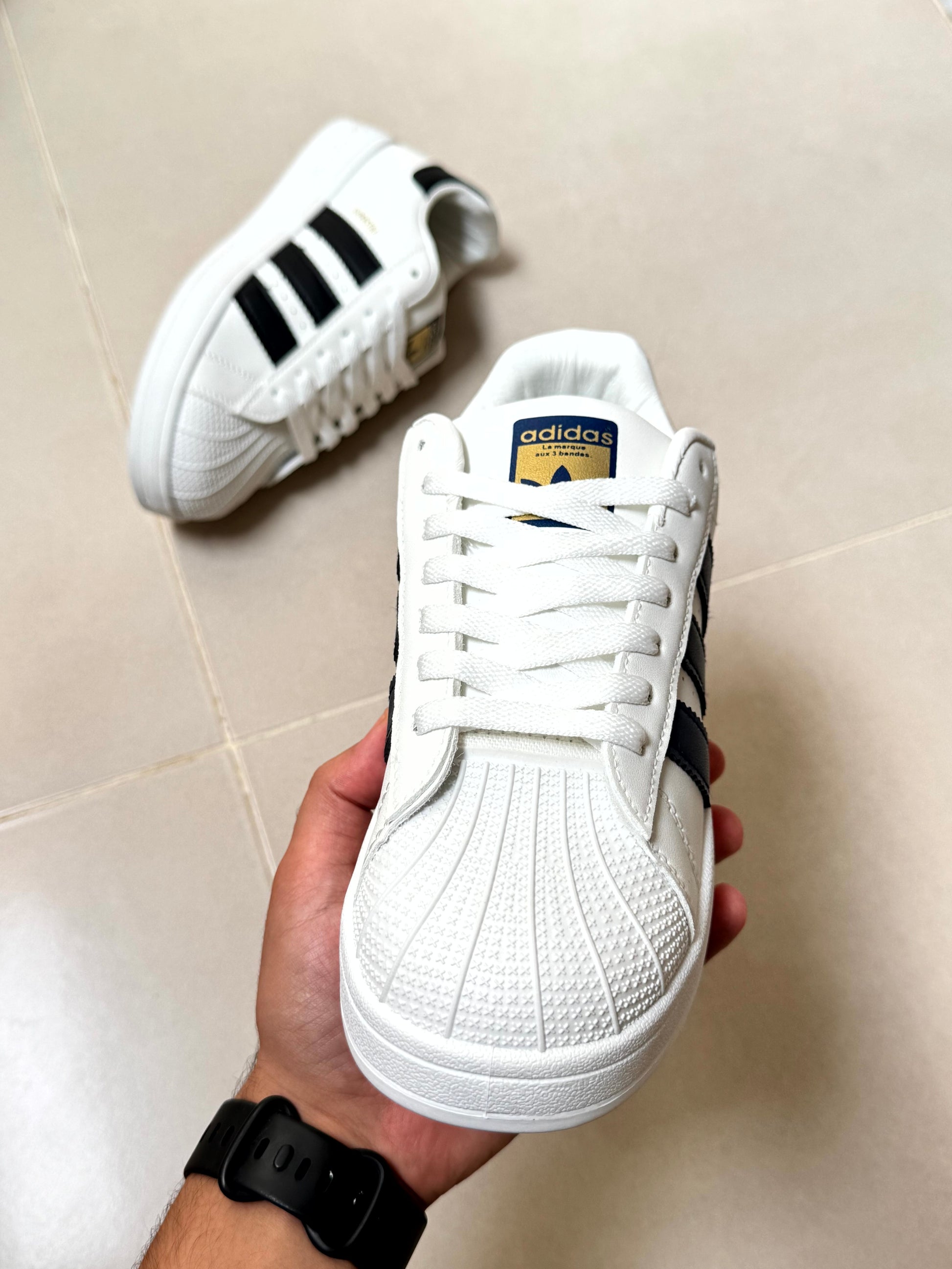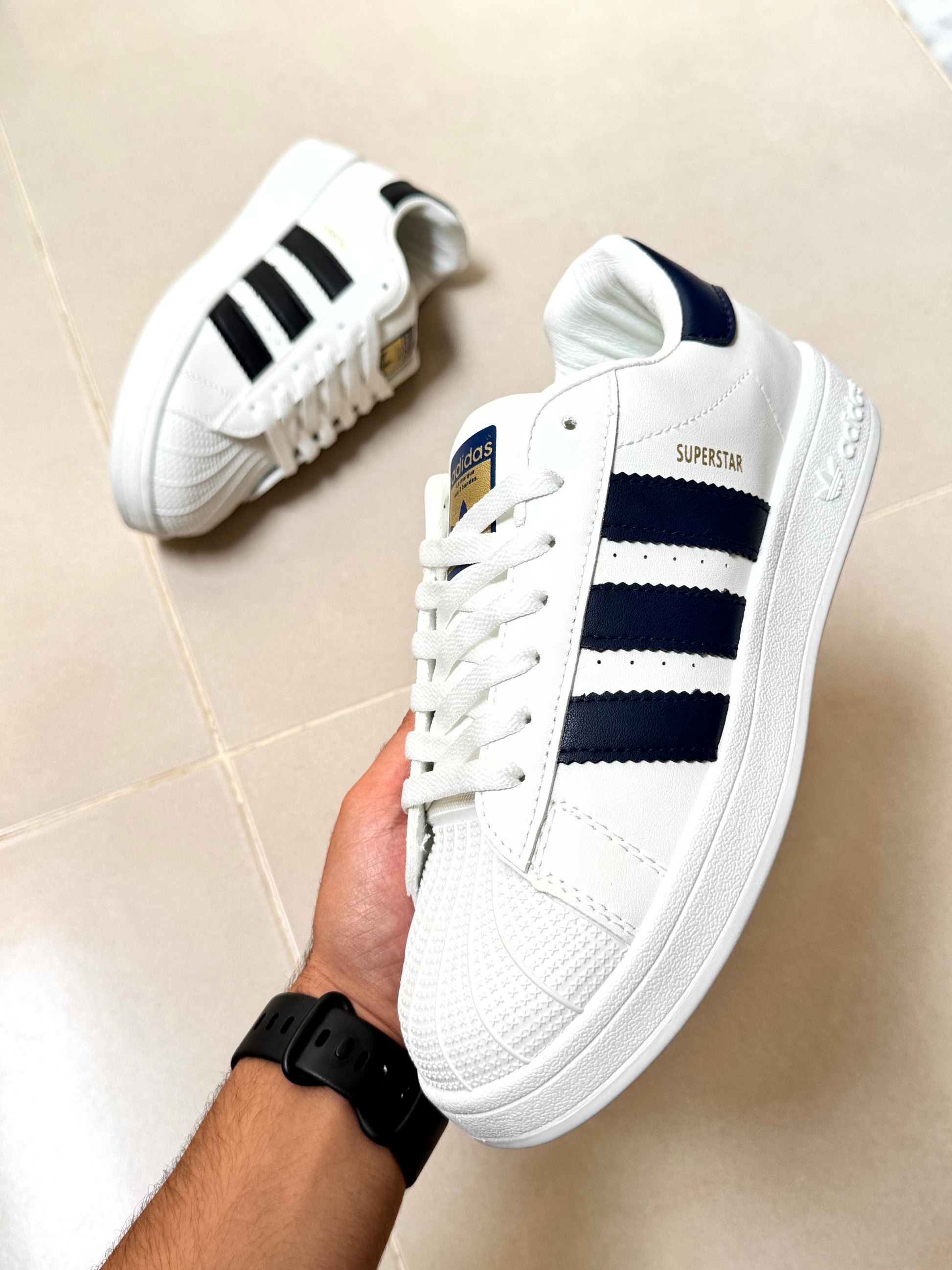 Adidas superstar blanche trois bandes bleu